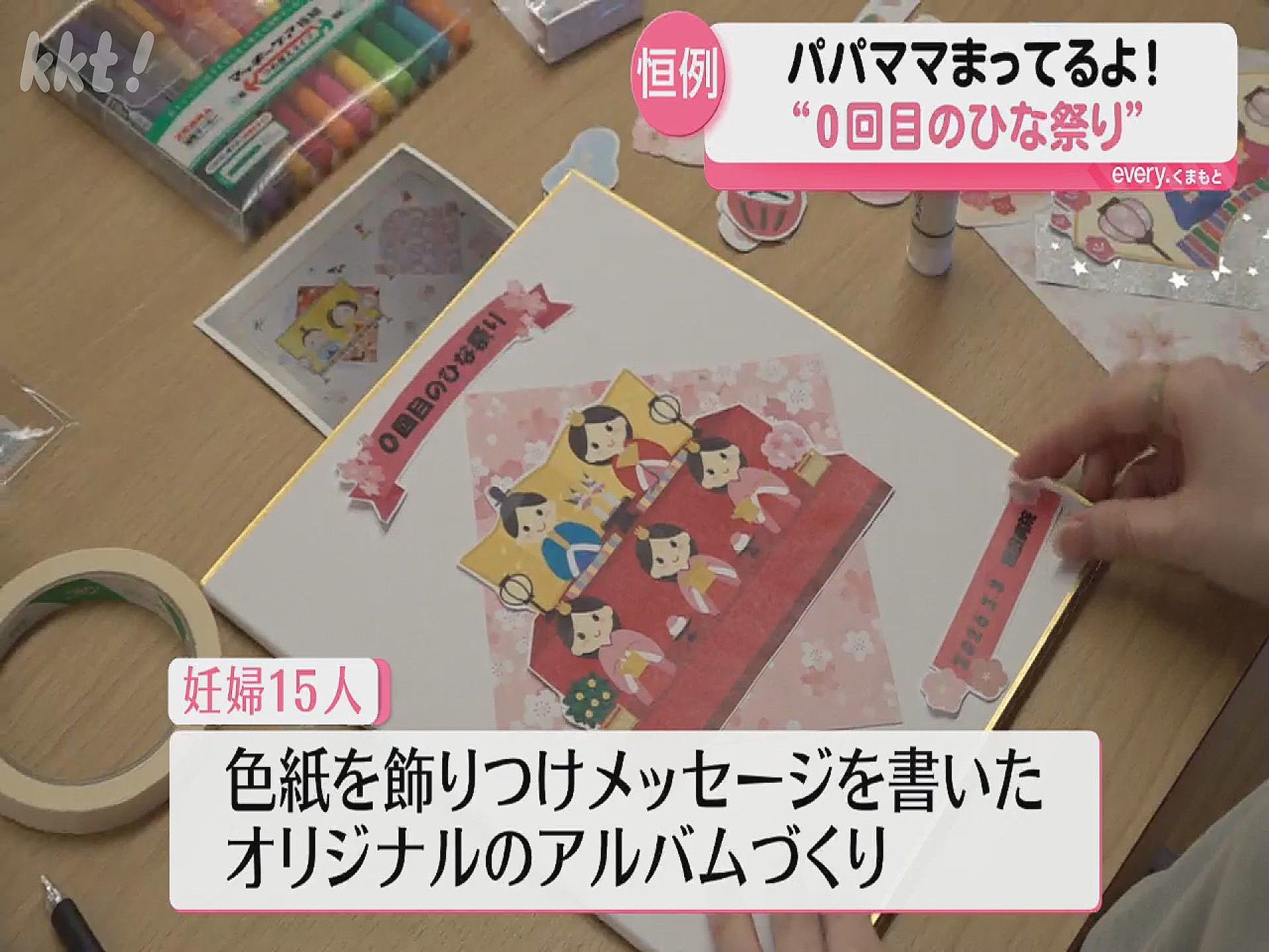 ひなまつりの3月3日、熊本市の福田病院で「0回目のひな祭り」が行われました。福田病院では毎年、ひなまつりの3月3日に生まれてくる赤ちゃんの健やかな成長を願って「0回目のひなまつり」を行っています。当日は出産を控えた妊婦15人が色紙を折り紙やシールなどで飾り付け、生まれてくる赤ちゃんへのメッセージを書いたオリジナルのアルバムをつくりました。 ■参加者「パパママまってるよ」■ 6月出産予定の妊婦「