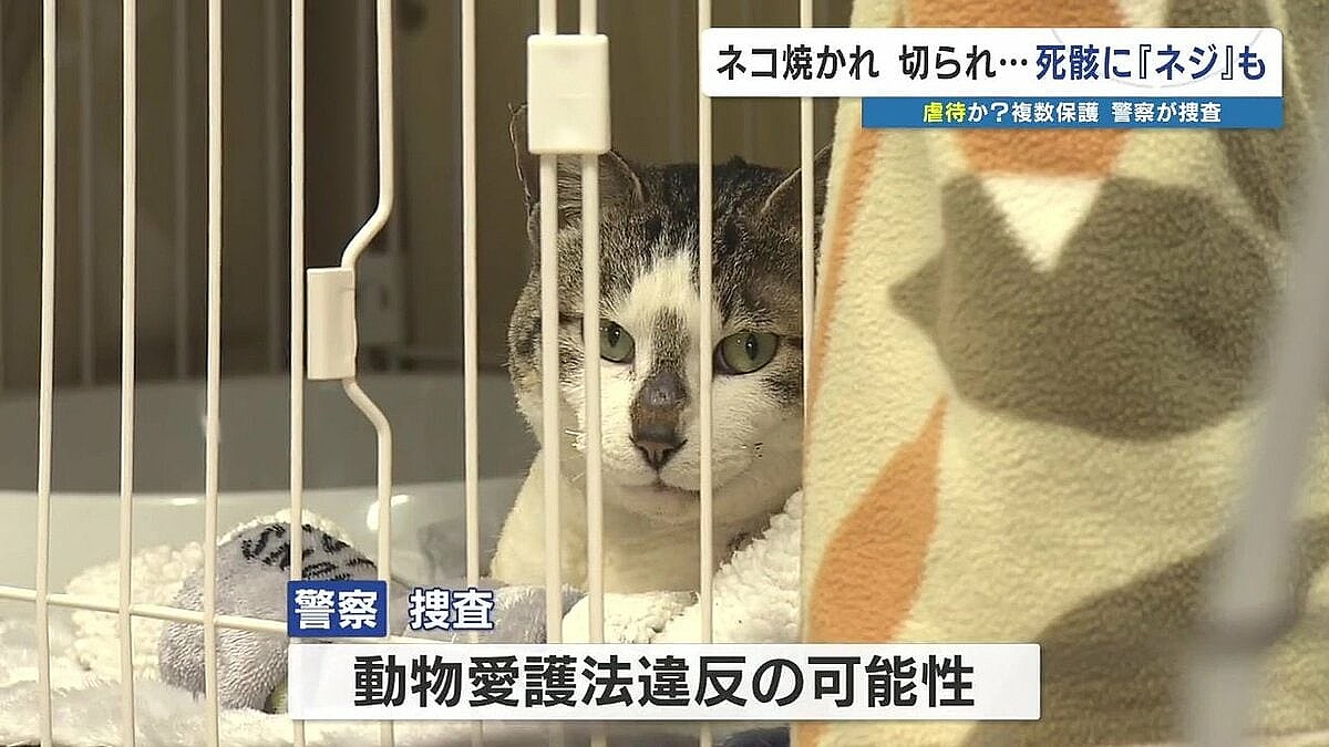 虐待か?複数のネコを保護 熊本県山都町で、虐待を受けたとみられる複数のネコが見つかり、警察が捜査を進めています。 【写真を見る】ネコ焼かれ切られ、火葬すると出てきた『ネジ』… 複数匹が虐待か?警察の捜査はじまる熊本・山都町 記者「山都町で保護されたネコの一匹です。ひげや首は焼かれていて、胴体も毛も刈られているのがわかります」 ひげは燃えたためか、なくなり、鼻には火傷のような痕、胴体の毛もはさみ
