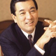 吉田氏は青空が広がる草原に座っており、にこやかな笑顔を見せている