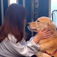 飼い主がママに甘えて抱きつくなど、日常の微笑ましいワンシーン