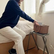 グレーニット×黒パンツに合わせると、モノトーンコーデのアクセントになる