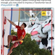 公式SNSで、選手の背後の実物大ガンダムを「トランスフォーマー」と説明