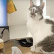 「私と遊ぶまで通さないニャ」とごねる駄々っ子のようにももちゃん