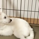 ケージと壁の狭い隙間へ頭を下にして入り込み、前足でちょんちょんする猫
