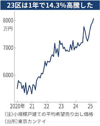 新築戸建て、東京23区で8000万円台に 3カ月連続最高
