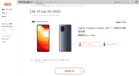 | au 5Gスマホ「Mi 10 Lite 5G XIG01」が9月以降発売に!本体価格は42,740円 |