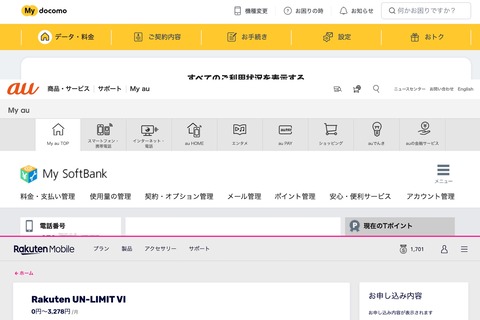 一方、KDDIではオンライン専用の新料金プラン「povo on au」ではオンライン解約に対応しているものの、携帯電話サービス「au」および「UQ mobile」では他社から乗り換え(MNP)に伴わないオンライン解約に対応しておらず、新規契約とは異なって解約した場合は取り返しがつかなくなることもあるとして対応へ否定的な立場を示しており、オンライン解約への実現に向けて総務省に対して新たなトラブルの抑制も含めて丁寧な議論をするよう要望しています。