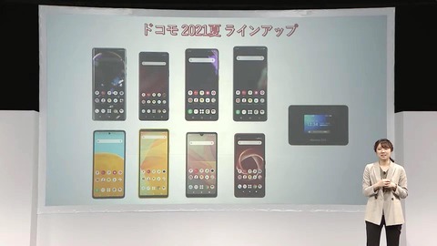 NTTドコモは19日、都内にて「2021夏 新サービス・新商品発表会」を開催し、新たに5G対応スマートフォン(スマホ)2機種と4G対応スマホ2機種、5G対応ルーター2機種の合計6機種を発表し、すでに発表されている5Gスマホ「Galaxy S21 5G SC-51B」や「Galaxy S21 Ultra 5G SC-52B」、「Xperia 1 III SO-51B」、「Xperia 10 III SO-52B」、「AQUOS R6 SH-51B」を含めた全10機種を「2021夏モデル」として順次投入します。