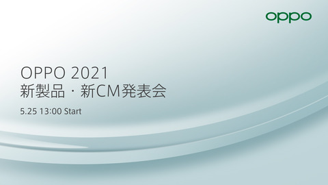 オウガ・ジャパン(旧:オッポジャパン)は17日、同社が運営する公式Twitterアカウント( @OPPOJapan )において「OPPO 2021 新製品・新CM発表会」を2021年5月25日(火)13:00から開催するとお知らせしています。発表会の模様はライブ配信される予定。