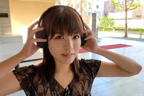 | ノイキャンや外音取り込みなどを搭載した高級ワイヤレスヘッドホン「FLAGSHIP ANC」を試す!(モデル:有里彩さん、撮影:筆者) |