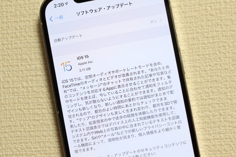 対象機種はiOS 13・iPadOS 13やiOS 14・iPadOS 14と同様にiOS 15がiPhone 6s以降およびiPod touch(第7世代)、iPadOS 15がiPad(第5世代)およびiPad Air 2以降、iPad mini 4以降、iPad Proシリーズで、各製品にて無料でアップデート可能となっています。なお、手持ちのiPhone 12 Pro Maxでは更新ファイルサイズは3.11GBでした。