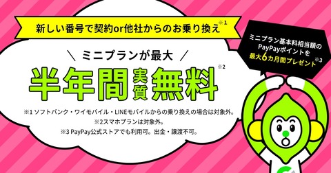 ・ミニプラン基本料最大半年間実質無料キャンペーン|【公式】LINEMO - ラインモ|格安SIM
