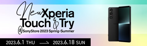 他にも直営店・旗艦店「ソニーストア」の銀座および札幌、名古屋、大阪、福岡天神にてXperia 1 VおよびXperia 10 Vの先行展示を予定しているほか、これらの5店舗にてXperiaの新商品をいち早く体験できるタッチ&トライイベント「New Xperia Touch & Try @Sony Store 2023 Spring-Summer ~すべてのXperiaファンに贈る、本物のエクスペリエンス~」( https://xperia.sony.jp/campaign/tt_event_2023_spring_summer/ )を2023年6月1日(木)から6月18日(日)まで開催するとしています。