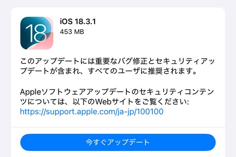 | AppleがiPhoneなど向けiOS 18.3.1とiPadOS 18.3.1をリリース! |