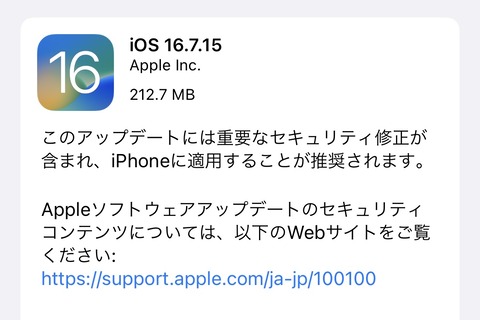| AppleがiPhoneやiPadなど向けiOS 16.7.15とiPadOS 16.7.15をリリース! |