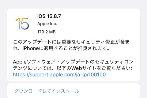 | AppleがiPhoneやiPadなど向けiOS 15.8.7とiPadOS 15.8.7をリリース! |