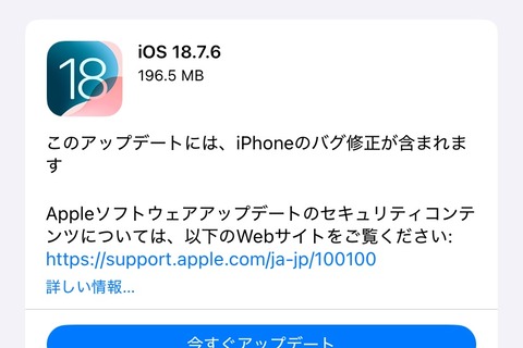 対象機種はiOS 18やiPadOS 18の対応機種となっており、すでにiPhoneについては最新のiOS 26に対応した製品についてはiOS 18.7.5へのソフトウェア更新を選べなくなっているため、iOS 26の対象機種ではないiPhone XSやiPhone XS Max、iPhone XR向けとなっています。その他、同社では合わせてiPhoneやiPadなど向けに最新の「iOS 26.3.1」および「iPadOS 26.3.1」なども配信開始しています。
