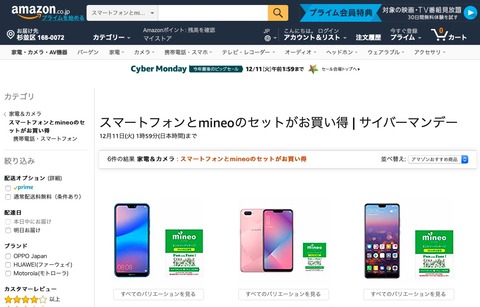 | Amazonサイバーマンデーは12月9日23:59まで!セール対象のSIMフリースマホをチェック |