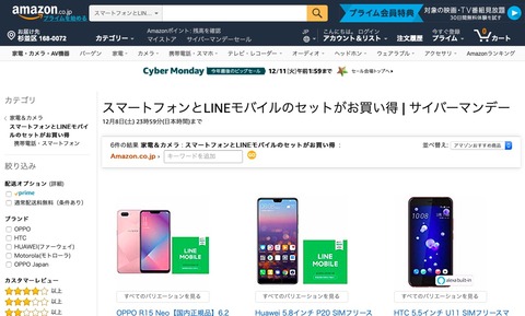 | Amazon.co.jpのCyber Monday Saleで人気SIMフリースマホがセール中!12月11日1時59分まで |