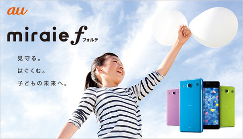 KDDIおよび沖縄セルラー電話は16日、今春に発売する「2017年春モデル」のうちの子どもなど向け京セラ製ジュニアスマートフォン(スマホ)「miraie f(ミライエ フォルテ)」(型番:KYV39)を2017年1月20日(金)に発売すると発表しています。