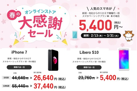 ワイモバイルオンラインストアで「iPhone 7」が2万6640円から、「Libero S10」が5400円からに!期間限定で春の大感謝セール