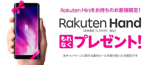 楽天モバイルが「【Rakuten Mini利用者限定】Rakuten Hand無料プレゼントキャンペーン」を実施!