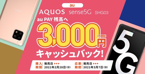KDDIは3日、携帯電話サービス「au」および「UQ mobile」向け5G対応スタンダードスマートフォン「AQUOS sense5G SHG03」(シャープ製)に対して最新プラットフォーム「Android 13」へのOSバージョンアップを含むソフトウェア更新を2023年3月6日(月)10時より提供開始しています。
