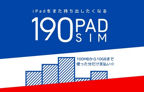 今年3月より提供されているソフトバンク回線のMVNOであるb-mobile Sですが、当初の「開幕SIM」や「電話SIM」と比べて今年11月に提供開始された「[[990 ジャストフィットSIM」よりかなり最低利用料が下げられており、今回の190 Pad SIMも月額税別190円(税込205円)からとかなり手軽に利用できるようになっています。