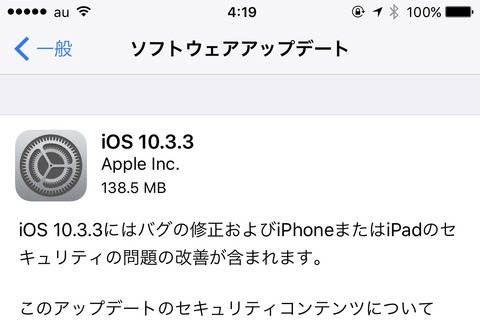 Appleは19日(現地時間)、iPhoneやiPadなど向けプラットフォーム「iOS」の最新バージョン「iOS 10.3.3」を提供開始したとお知らせしています。