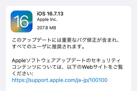 | AppleがiPhoneやiPadなど向けiOS 16.7.13とiPadOS 16.7.13をリリース! |