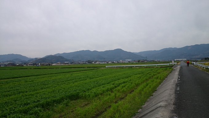 さが桜マラソンコース終盤を桜を愛でつつ北上します。下はこういう景色だったのかと、昨日とは少しだけ違う桜をゆっくりと目で感じます。佐賀らしい山々を仰いで折り返しです。