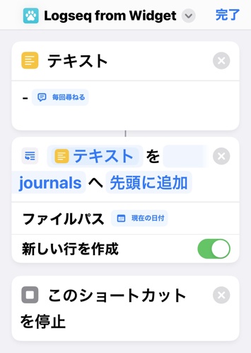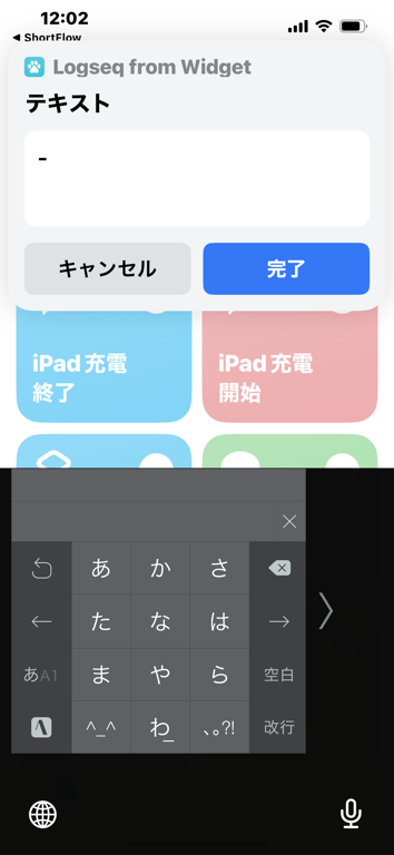 を参考に、Logseqに入力するショートカットを起動するWidgetを置いてみた。