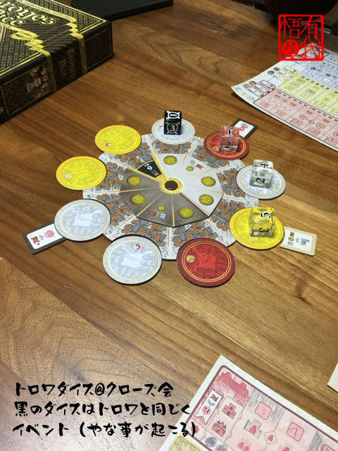 箱裏にトロワと同じ世界観のゲームです、と説明書に書いてあるんですが、そもそもトロワの日本語版は出ていません。マジレスするとトロワで日本語化する必要があるのは説明書だけですがね! それもBGGにアップされてるし! むしろトロワ持ってるし!
