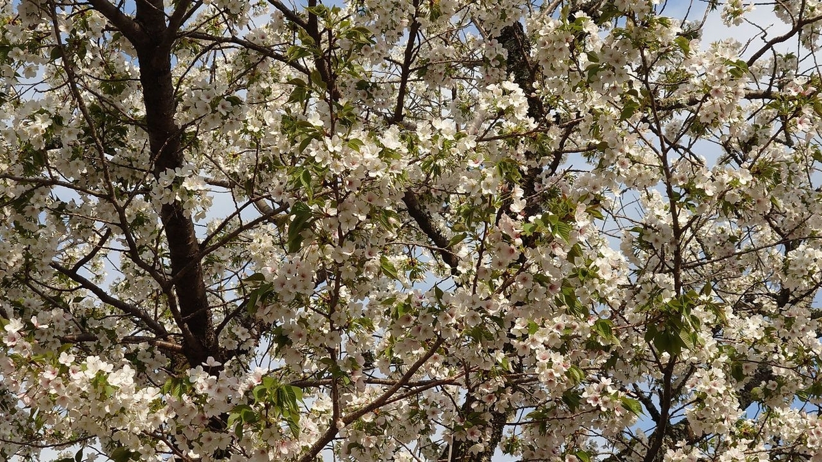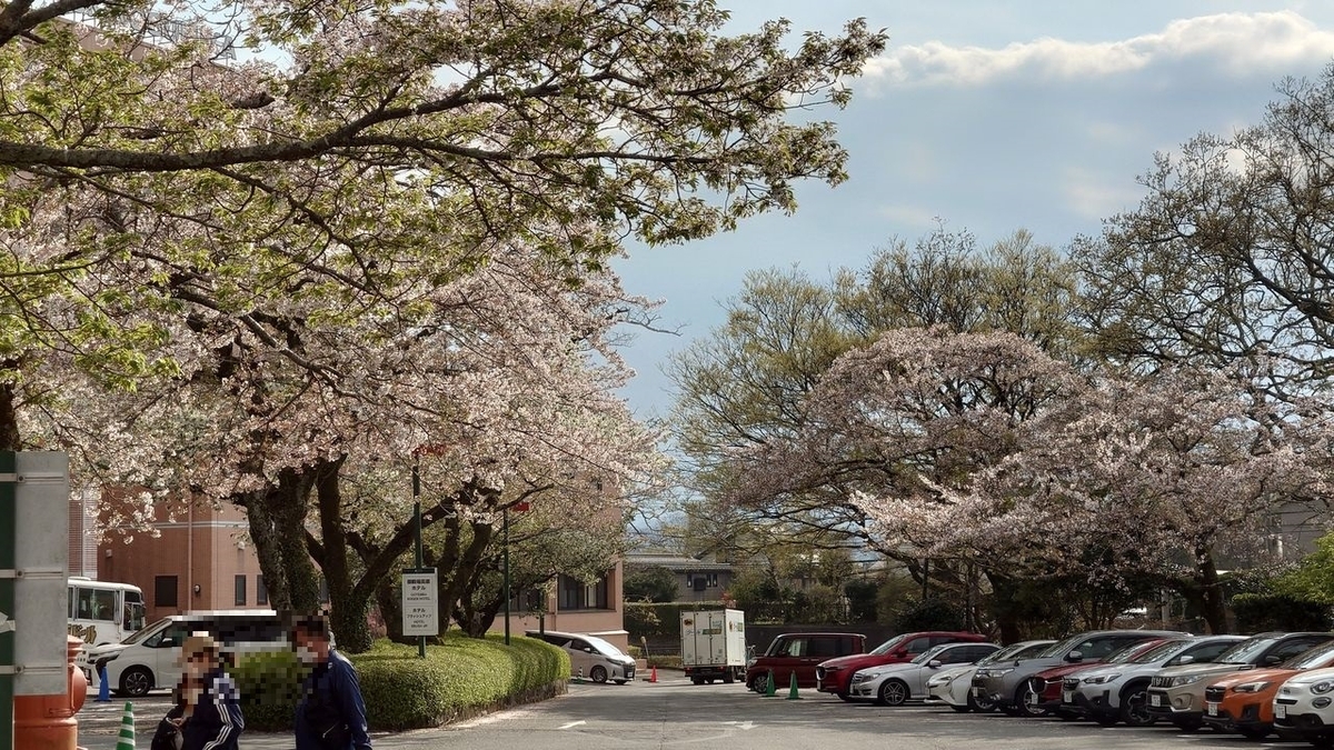 広場を通り過ぎると、その先にあるのは御殿場高原ホテル。その手前を折り返すような形で、曲がっていくと、正面ゲートから続く道のところに、桜が並んで花を咲かせていました。