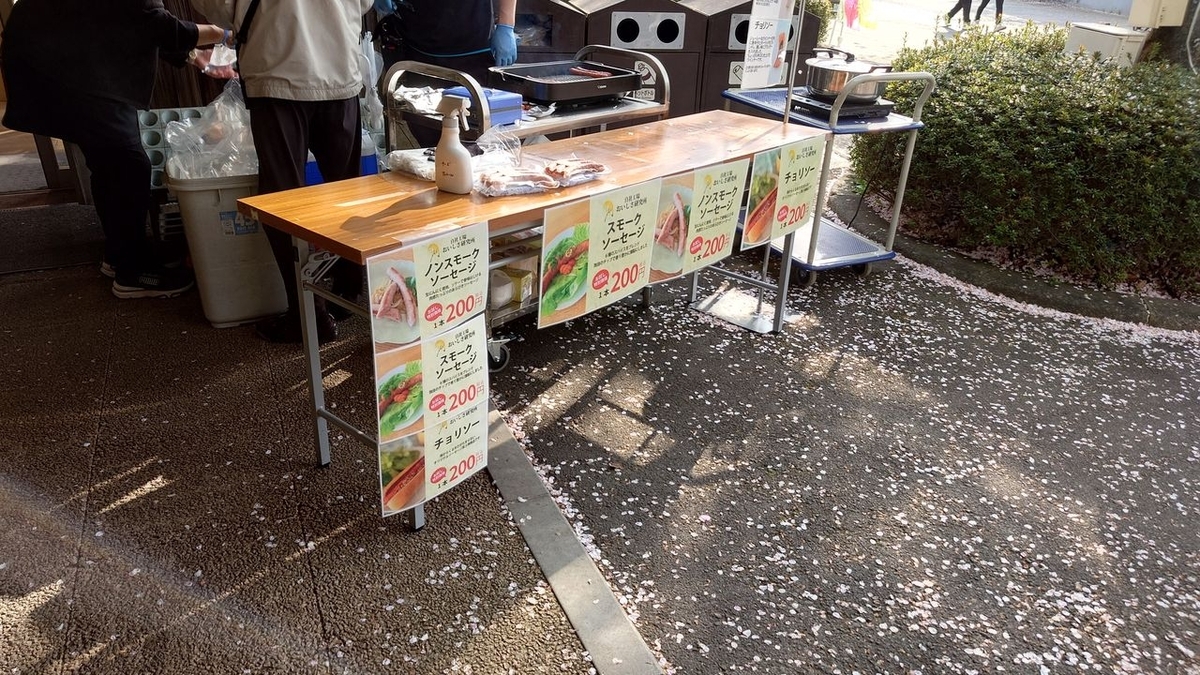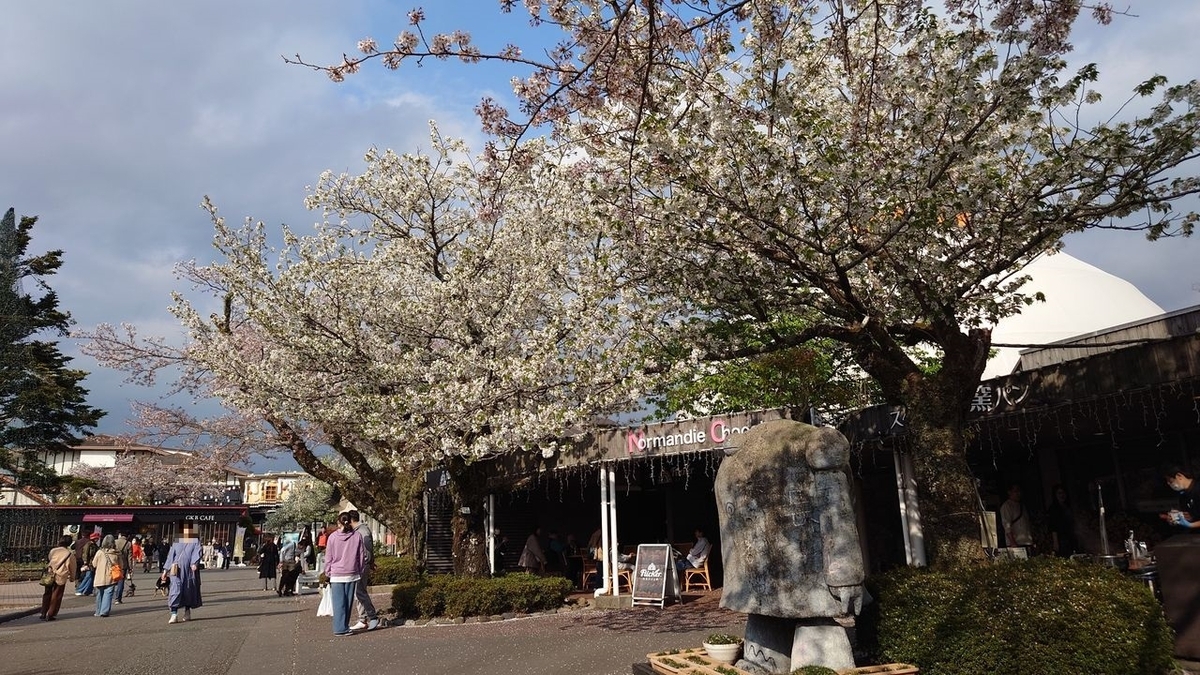 トイレから出てきて、しばらくこうして桜を眺めたり撮ったりしながら待っていたのですが、トイレが混んでいたのか、かみさんがなかなか出てきません。暇なので、向かいにあった『Sakura MARCHE』に行ってみました。