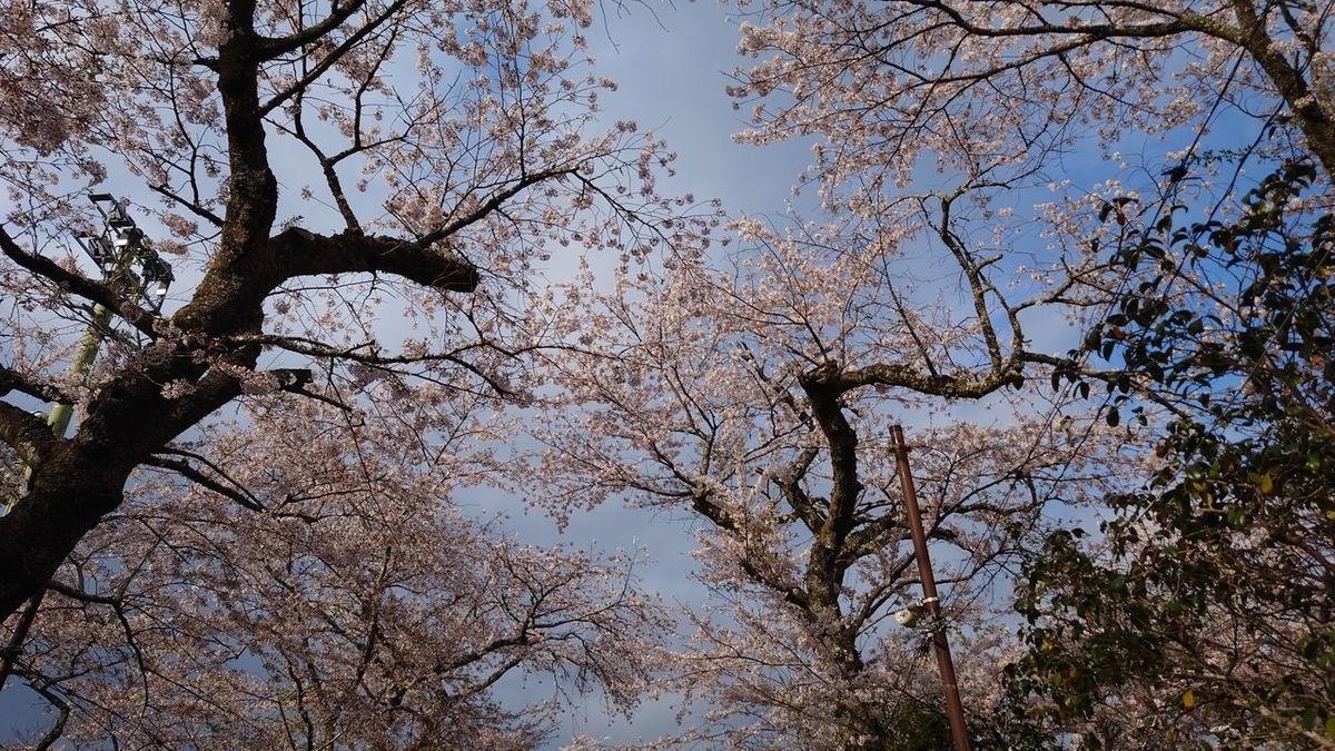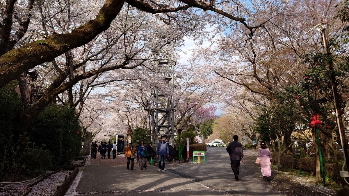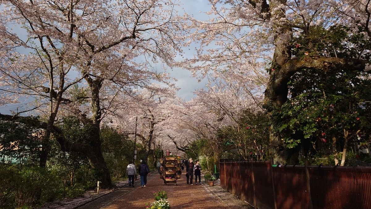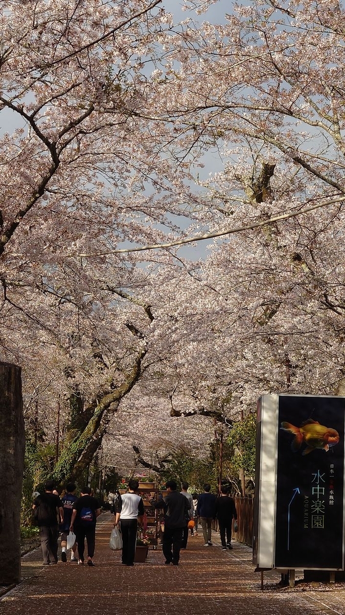 このルートは、夜になるときれいなイルミネーションで飾られるところです。以前来た時は、外側が見えないくらいにイルミネーションで飾られていましたから、外側がこんな桜並木だとは思ってもいませんでした。