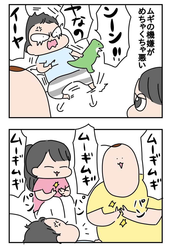 ムギのトイトレ② 前回の話▽オムツを隠したいムギでもすぐ内診で呼ばれるからと拒否したら静かに泣いたオムツの子もいたけどムギにはパンツの子しか目に入っていなくてオムツが恥ずかしかったらしく、うんちをトイレですると決意するのであった3歳児検診は異常無しで無事終わり帰りの車でも ... 2019年10月29日 続きを読む