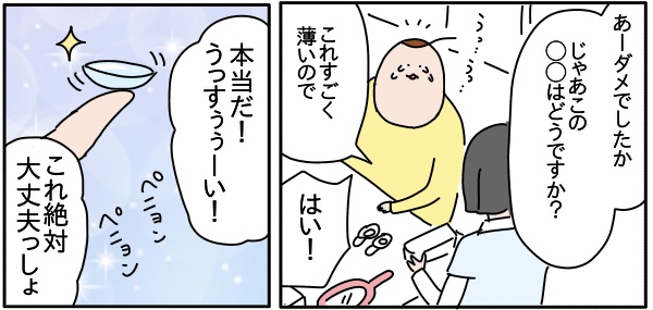 自分に合ったコンタクトレンズ探し③ ▽前回の話 眼科イチオシコンタクトつけたら目が充血したあまりにも薄くてこりゃ付けてる感覚ないんじゃあないと思ったけどガッツリつけてる感覚あったあと薄すぎて形がすぐ崩れるというか、つけるの少し難しかったきっと合う人にはまるでつけてない感覚なんだろうなぁそして ... 2022年01月30日 続きを読む