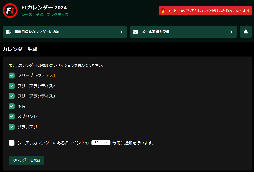 自分は去年に引き続きf1calendar.comを利用しています。