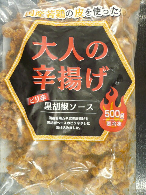 国産若鶏の皮を使用したピリ辛揚げ。