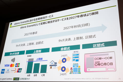 stera transitの定期サービスは「金額式」を基本に据え、2027年春から提供する予定。2027年秋を目標に「区間式」も導入するほか、従来の“事前購入型”も提供できるよう準備していく。