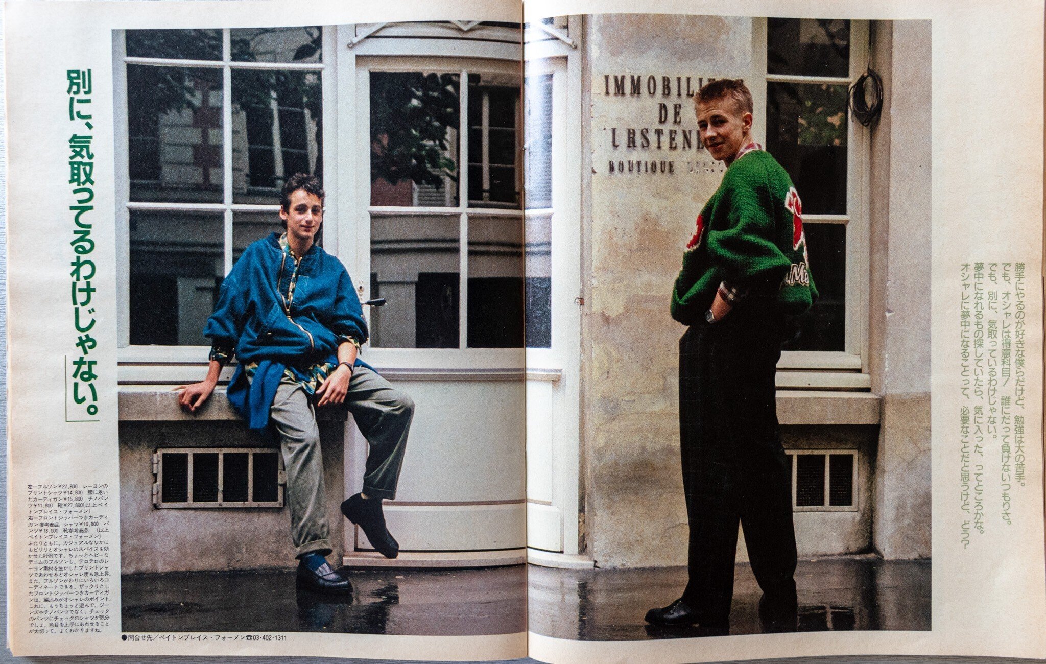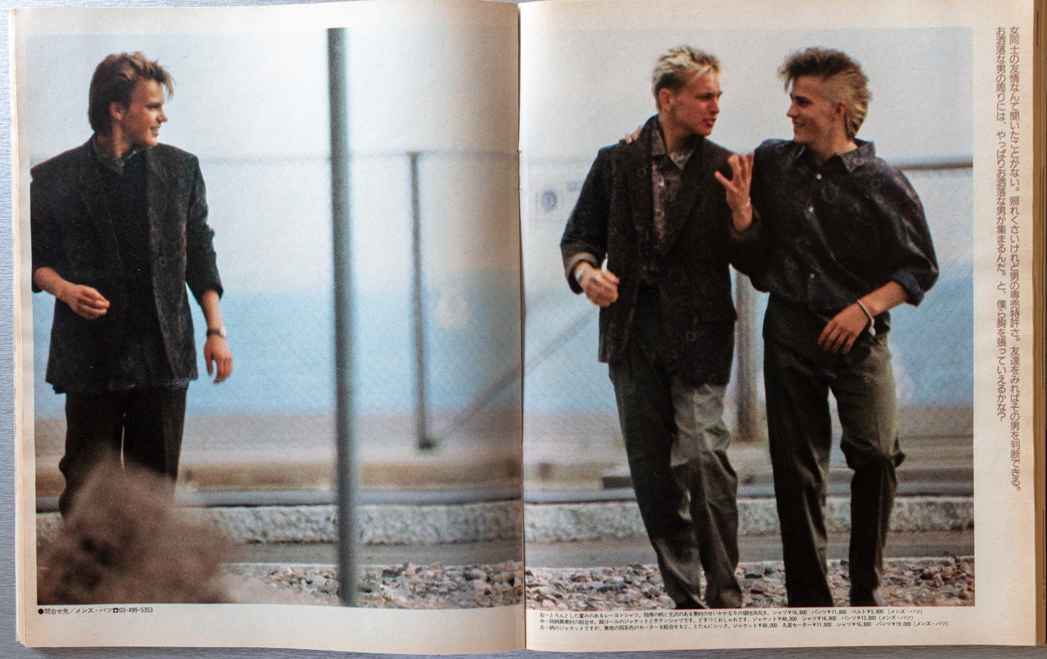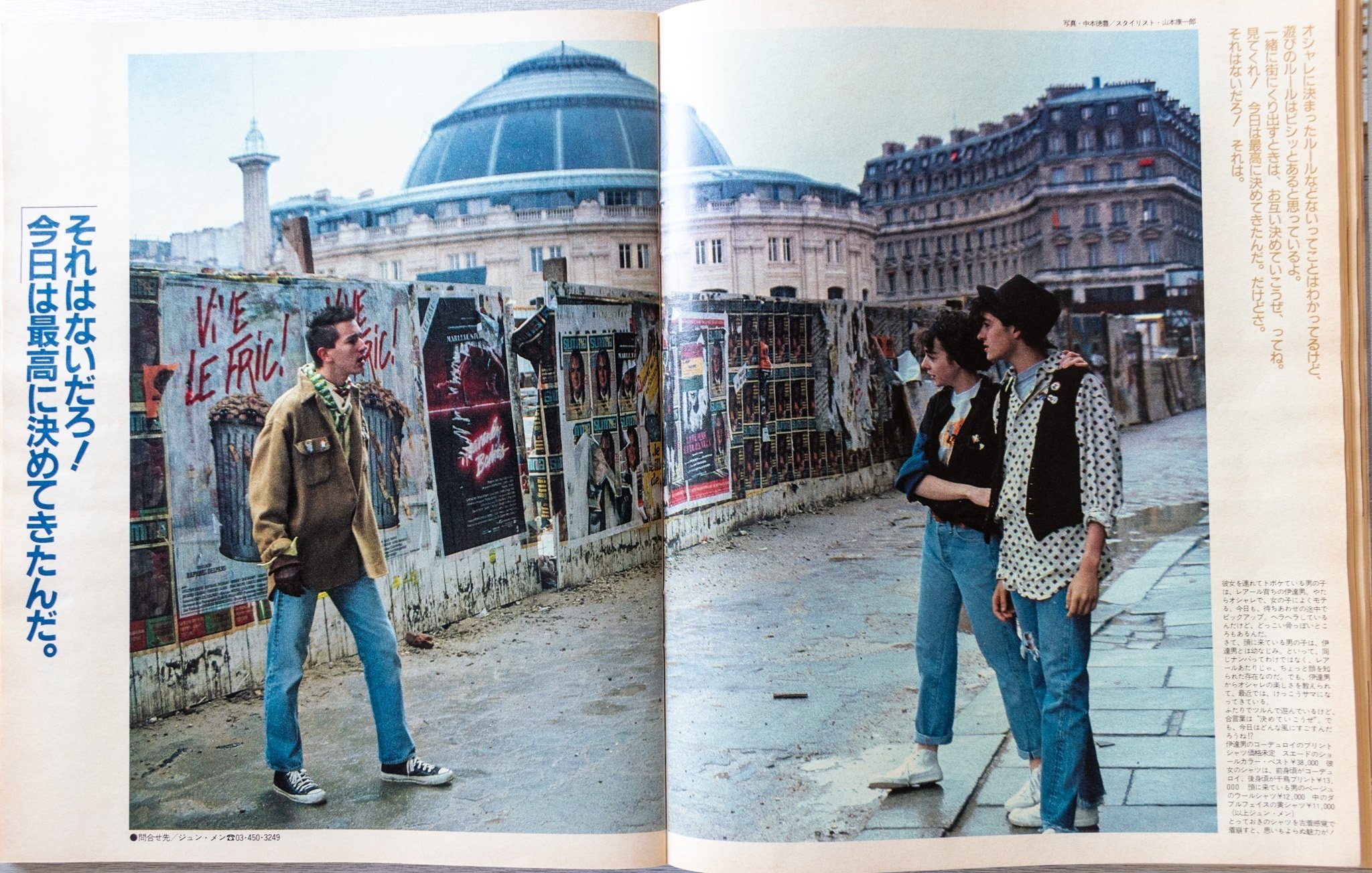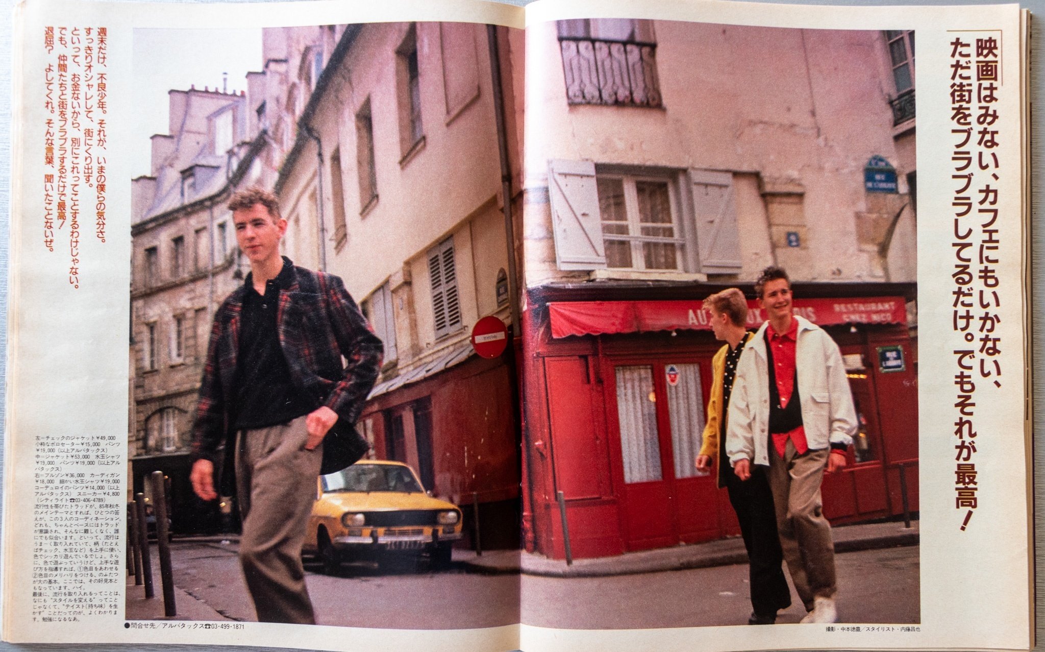 ロケ地はおそらく全編パリ。そして、現地のモデルを起用していると思われます。クレジットを見ればわかりますが、Y'sフォーメン、ジュン・メン、イサム・メンなど、当時人気だったDCブランドアイテムがメイン。