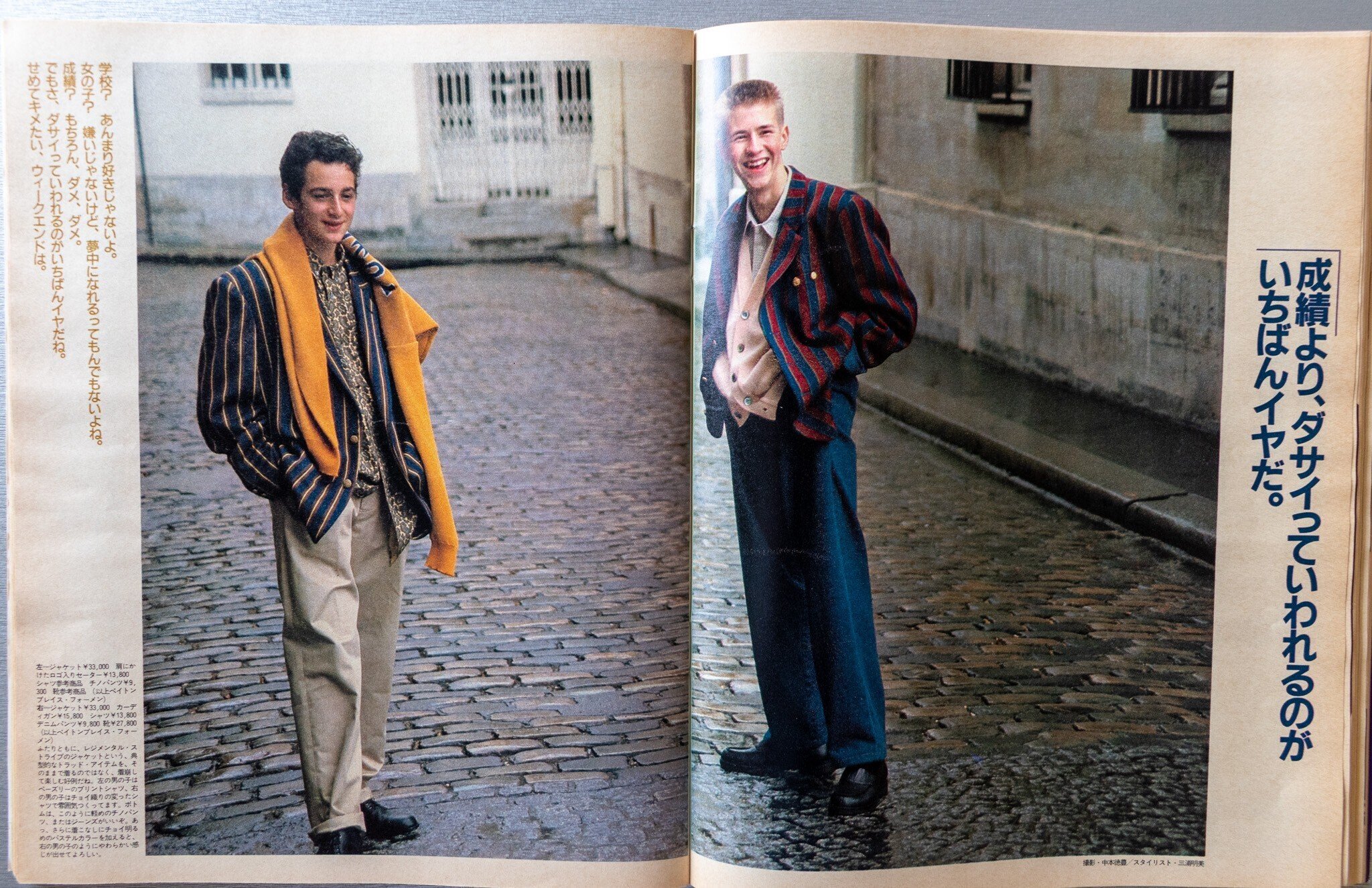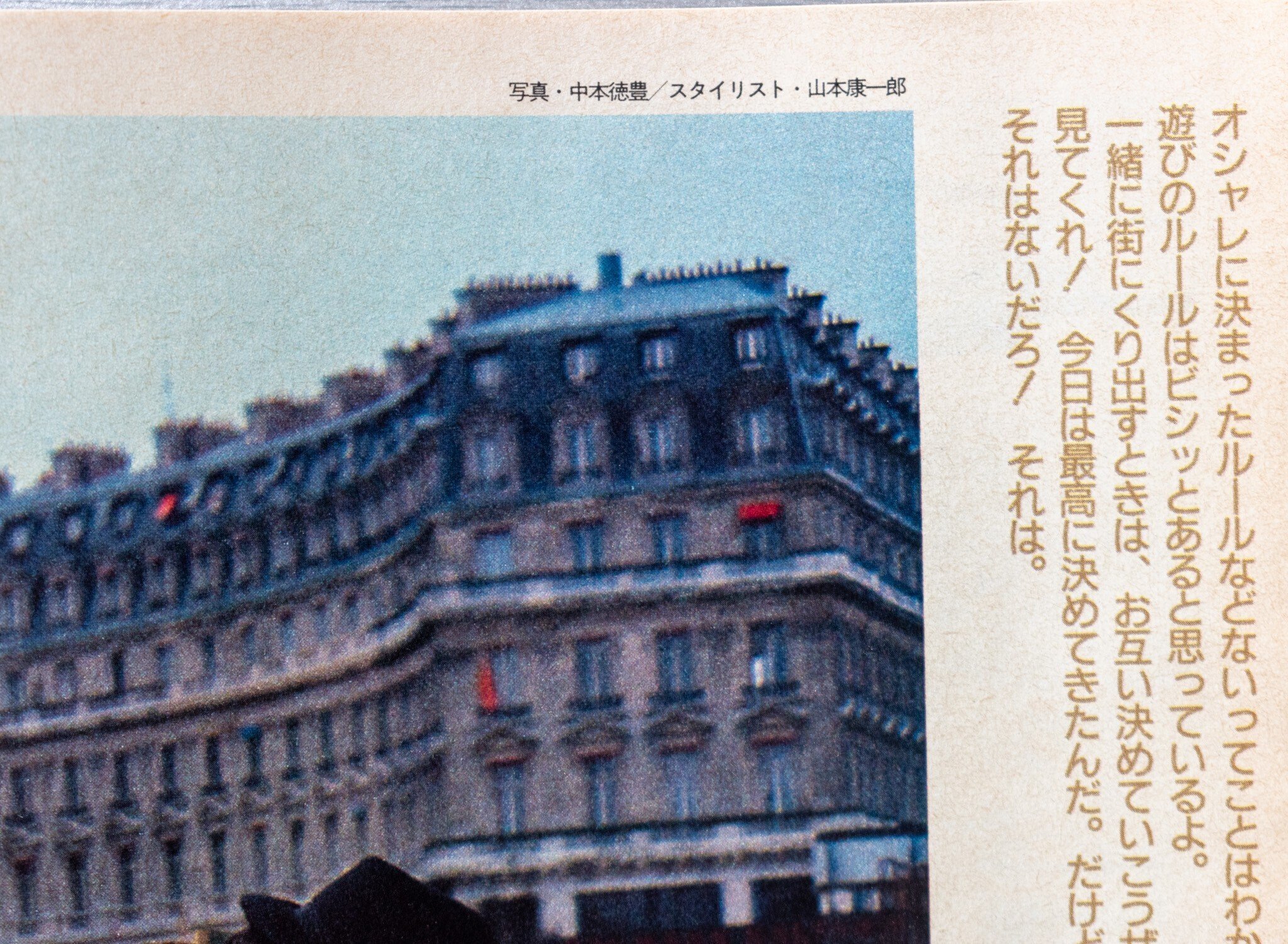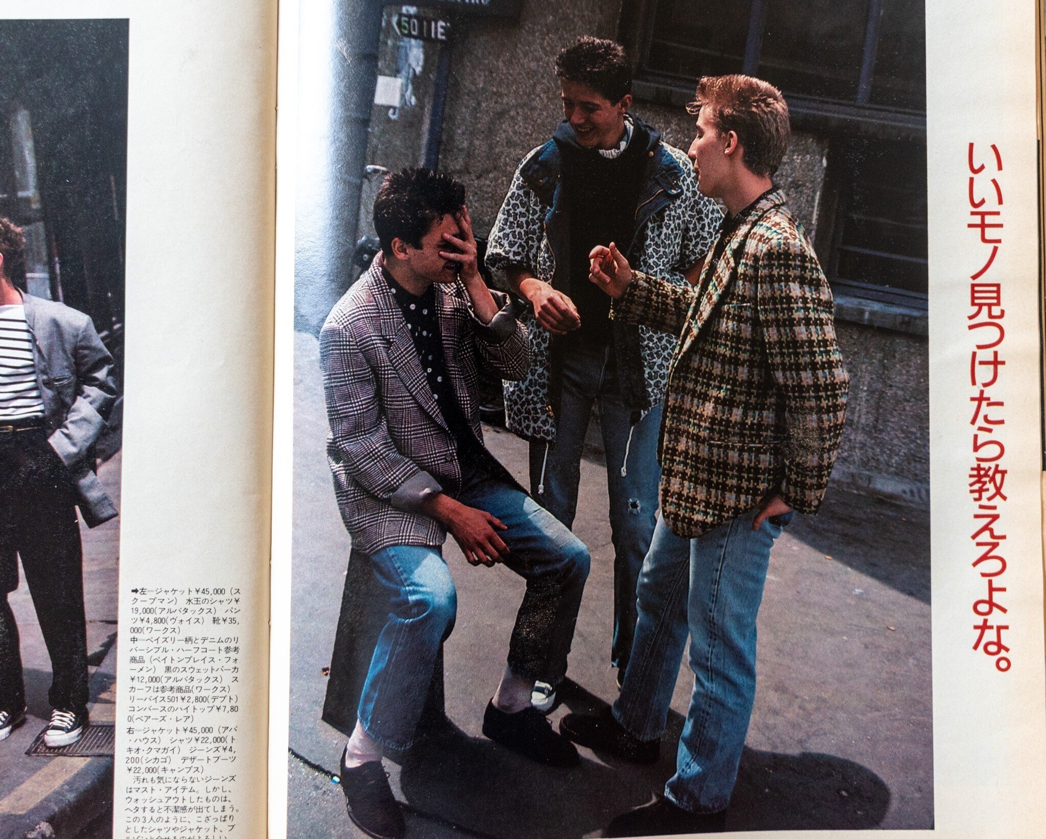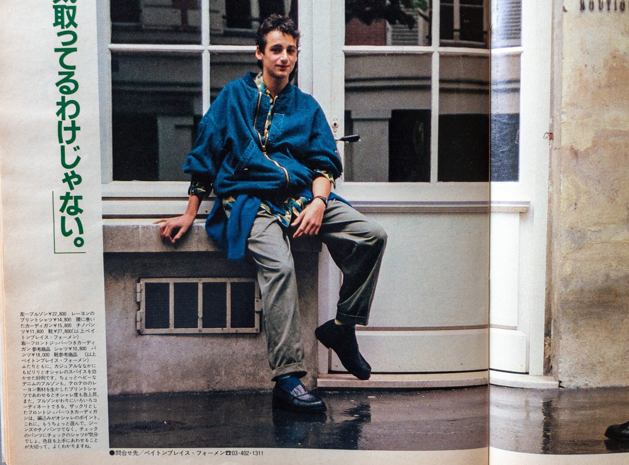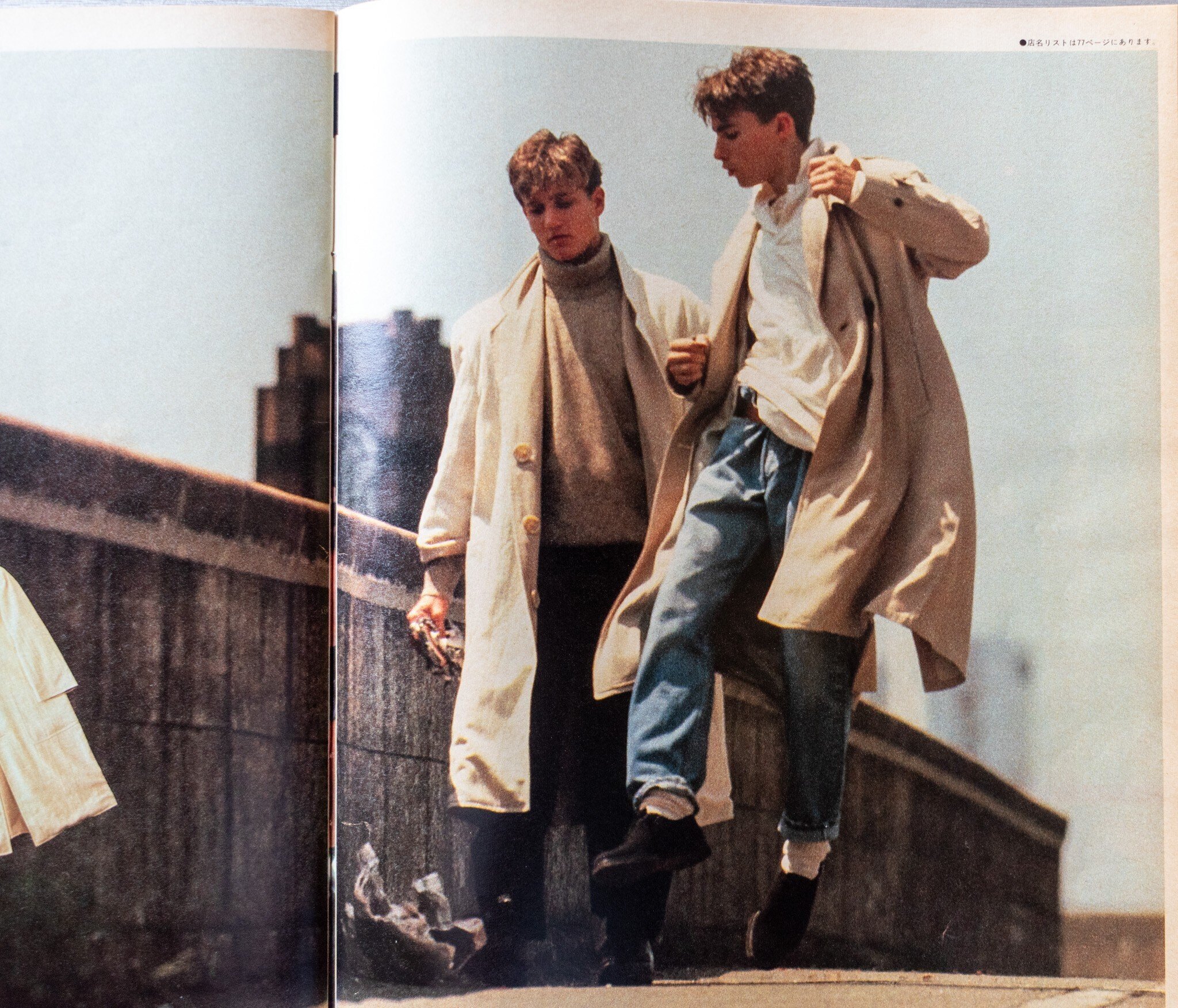 ロケ地はおそらく全編パリ。そして、現地のモデルを起用していると思われます。クレジットを見ればわかりますが、Y'sフォーメン、ジュン・メン、イサム・メンなど、当時人気だったDCブランドアイテムがメイン。