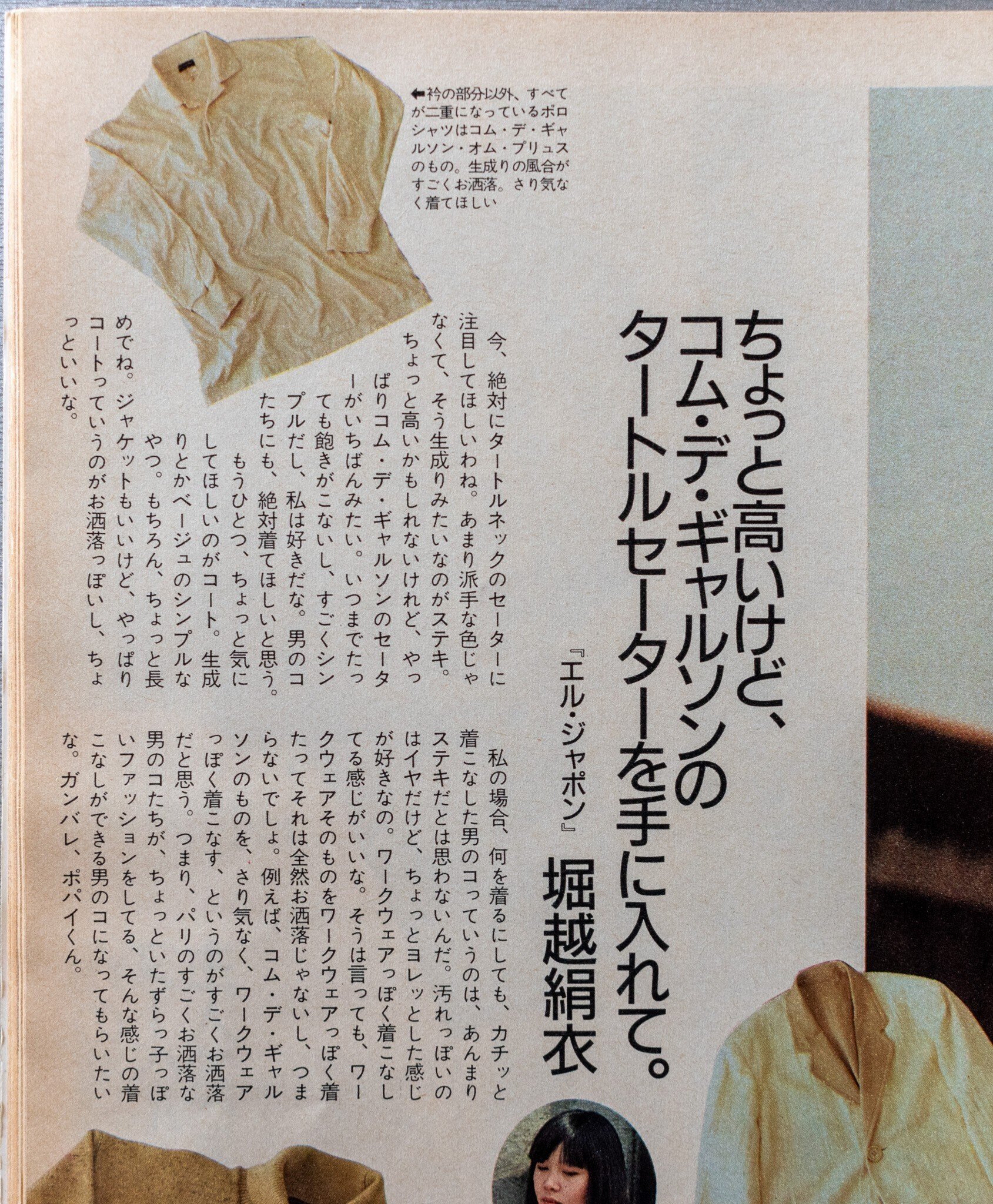 そして。お次は「ちょっと高いけど、コム・デ・ギャルソンのタートルセーターを手に入れて」と提案する「エル・ジャポン」の堀越絹衣さん。