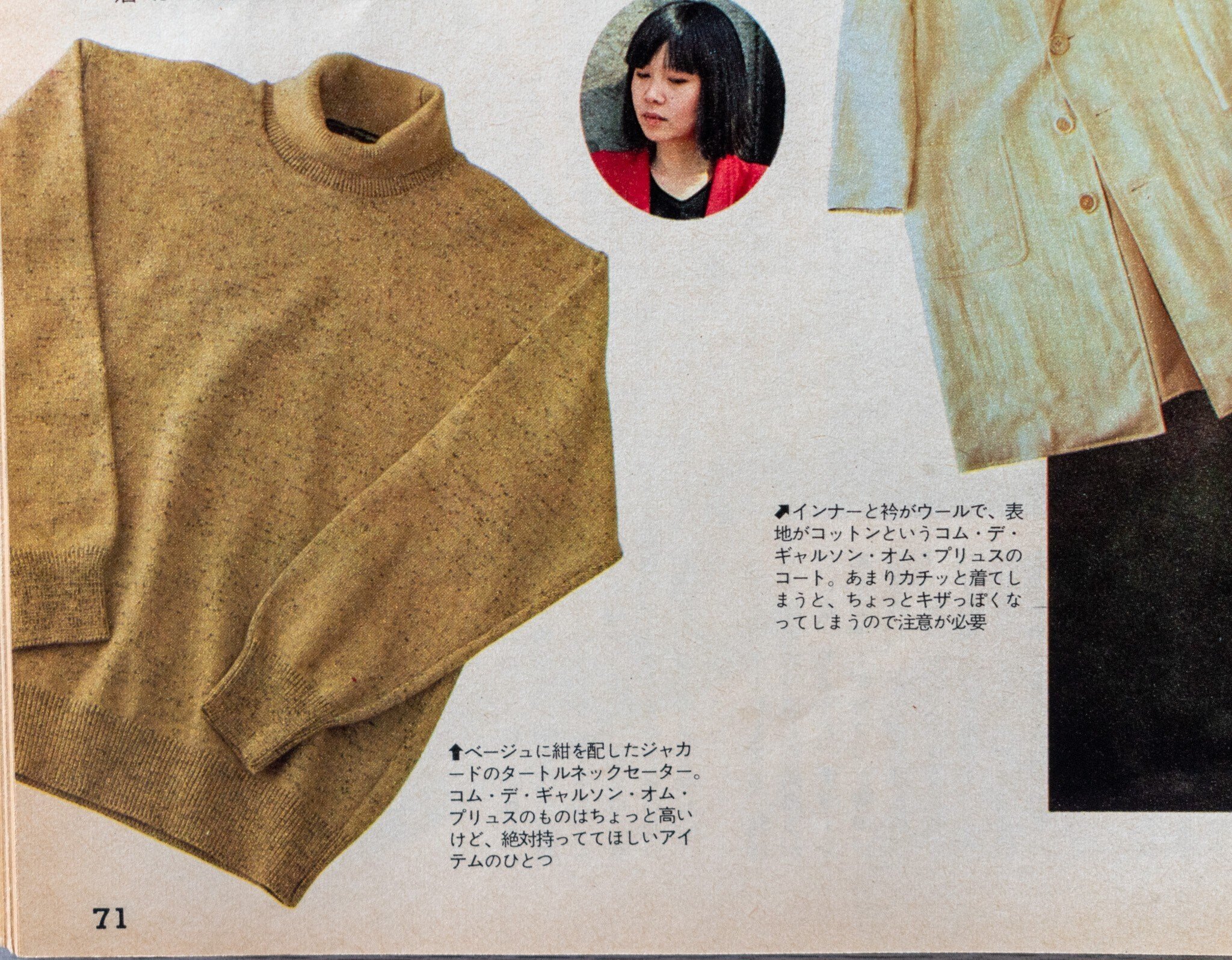 どうやらこの当時、タートルネックニットは「新しいアイテム」だったようです。