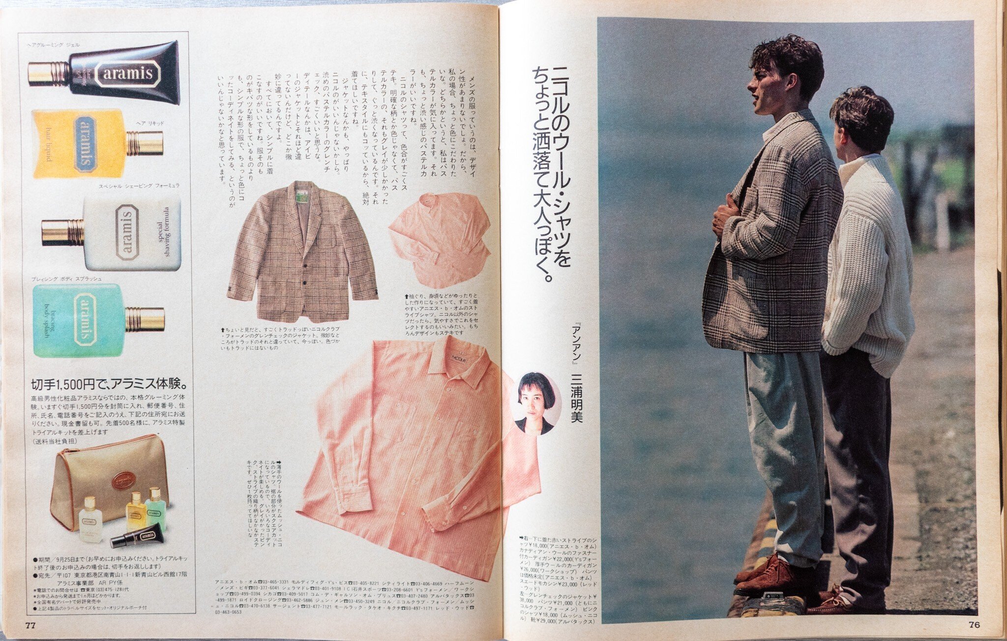 「ニコルのウール・シャツをちょっと洒落て大人っぽく」。以上で「君たち!この服にしなさい!ハイ!」特集は終わり。