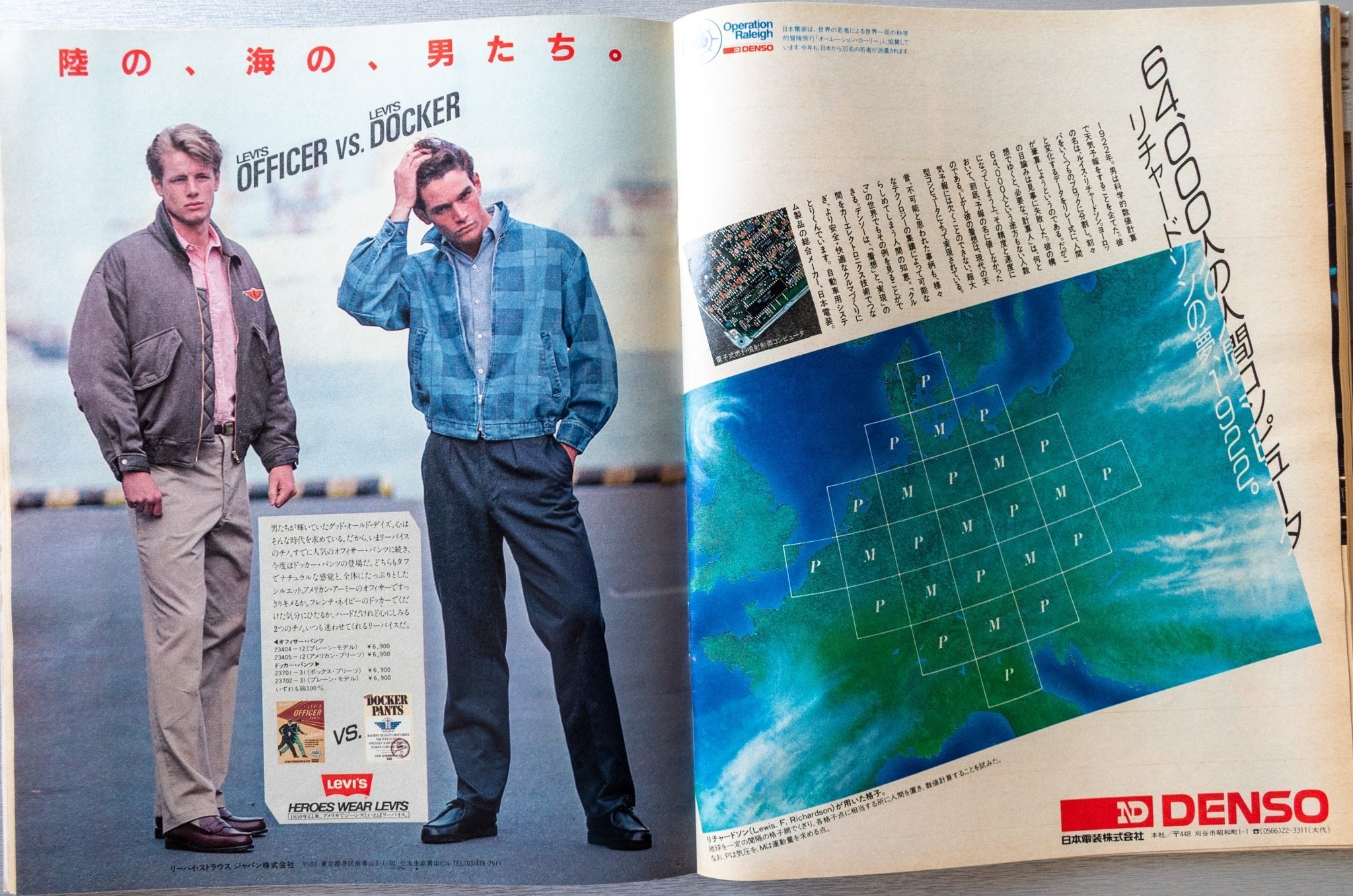 左ページ、リーバイスの「オフィサー」と「ドッカー」の広告。