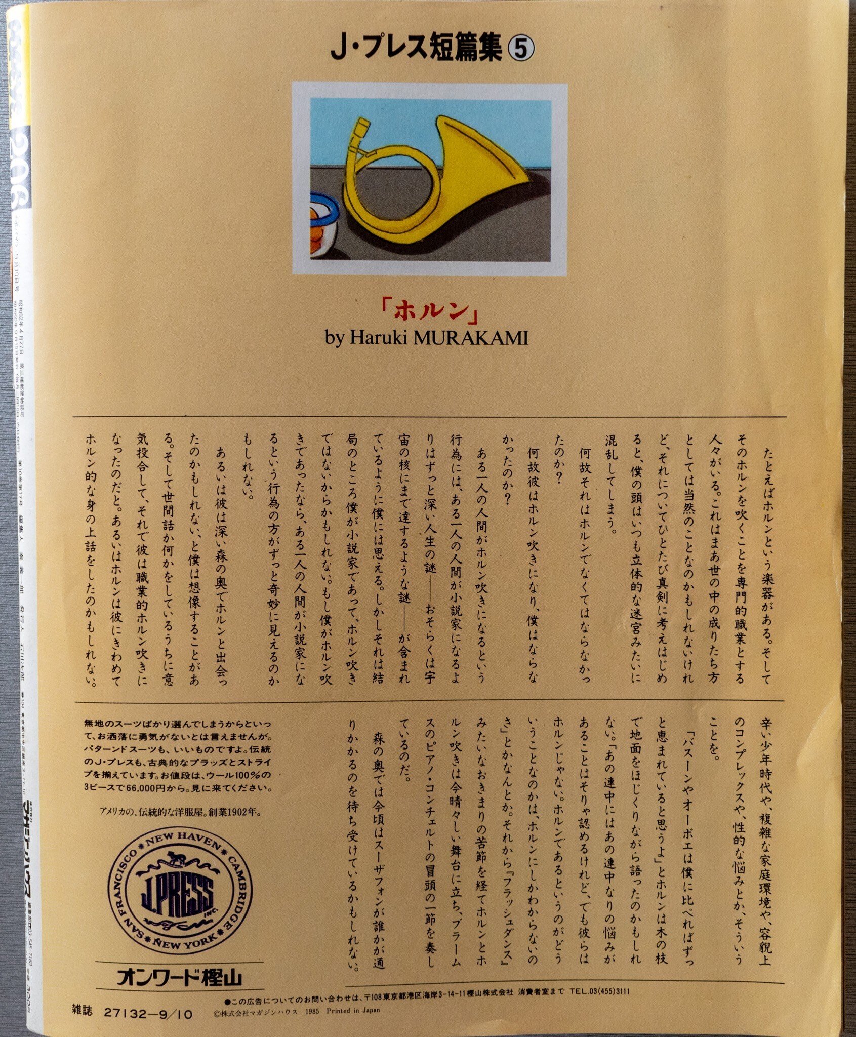 で、裏表紙は村上春樹さんの短編エッセイが掲載された、Jプレスの広告。こういった贅沢な広告も、この時代ならではでしょう。