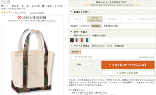 ちなみにL.L.Beanオフィシャルオンラインストアは5,000円以上なら送料無料。ビーントートは5,900円なので、送料無料で購入できます。