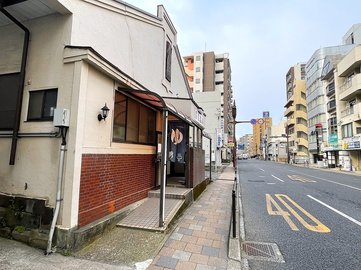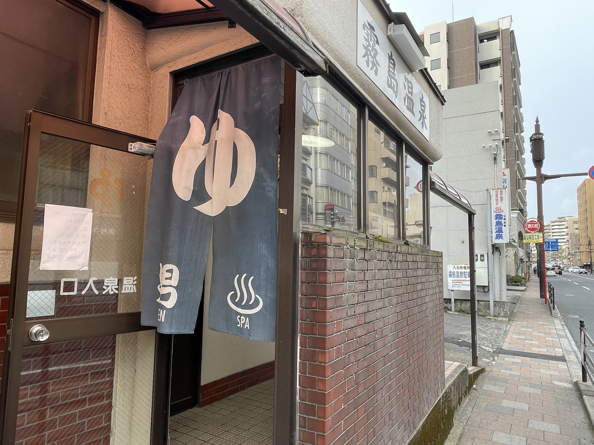 駅から徒歩7分程で通りの左手に霧島温泉さんが見えて来ます。